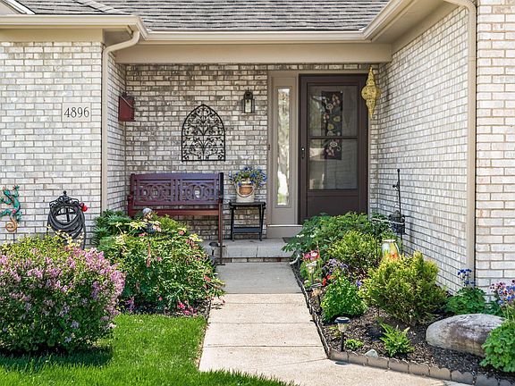 Remarkable one-story condominium in the very desirable '' Village at Grovepointe '' Community, enviable backyard location with mature trees behind, a private patio and serene view of the pond and fountain. Attractive brick facade with attached garage and concrete drive tucked away in a quiet cul de sac, very nice open floor plan with vaulted great room w/ fireplace, dining area and kitchen with island, pantry and stainless-steel appliances, vaulted primary suite with walk in closet and full bath, large basement with storage room and finished rec room for extra living space.