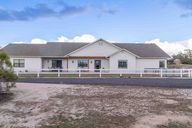 Custom ranch homeCovered front porchFront and backyard fencingFruit tree orchardHickory cabinetsStainless steel appliancesRear cement covered patios