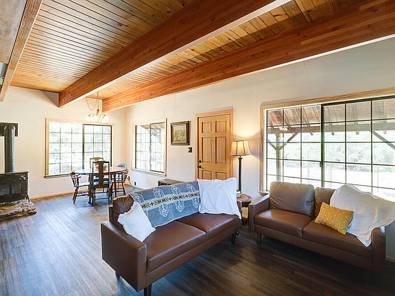 Here is your opportunity to own a piece of heaven: a 2 bed, 2 bath rustic cabin on 20 acres in the quiet mountain community of Badger. Less than an hour outside of Visalia, 30 minutes to Kings Canyon National Park and 15 minutes to Sequoia National Forest, this is the perfect spot for a weekend getaway or full-time homestead. The cabin has seen significant updates in the last couple of years, blending rustic charm with modern comforts. Large, double pane windows let in tons of natural light and incredible views of Buck Rock, redwoods, and your very own pond (1 of 3!). There is also a shop, barn, pole barn, shed, poultry coup, corrals, and chutes to house all your hobbies and furry friends. The gently rolling acreage is fully pipe fenced /cross fenced and full of wildlife including ducks, turkeys, quail, coyotes, bear and dove. This property comes fully furnished with Starlink installed, making for an easy transition to the good life.
