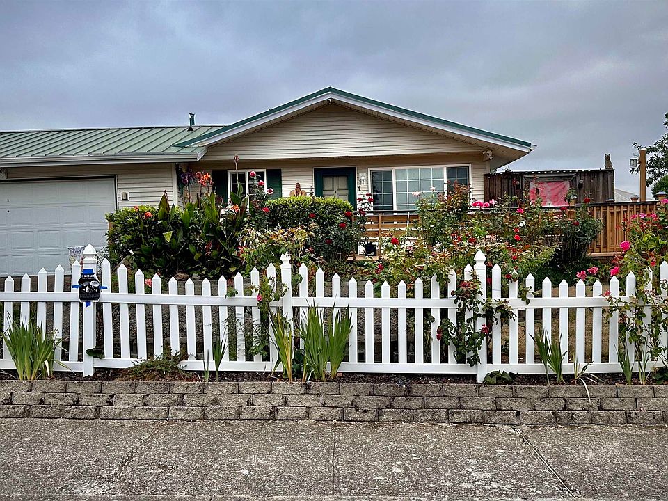 Fenced private corner lotOversized deckUpdated flooringRoom for playCountertops in kitchenVinyl windowsSprinklers and drip systems