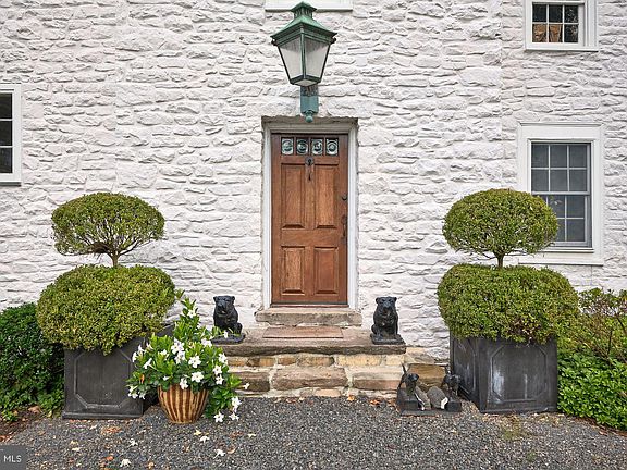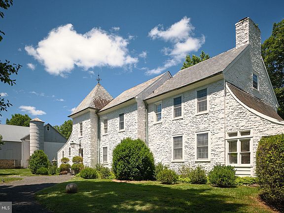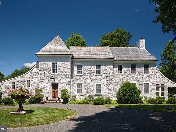 Down a long tree-lined drive find one of Bucks County’s most distinctive historic properties, “DOGS & Frogs”. Built in 1780, this 4 bedroom, 3.5 bath renovated French Normandy-style stone farmhouse features wood-burning fireplaces, antique black walnut flooring, a double- height great room, updated kitchen, and newly built spacious glass family room which opens out to the gardens. Just off the kitchen is a charming, covered veranda which serves the pool area. The Owners Bedroom Suite includes a renovated bath and sumptuous library/sitting room. There are 2 more bedrooms and bath at the second level. The third level contains a spacious Guest Suite. The home sits on 10 open acres with mature fields. The property boasts a classic Bucks County stone bank barn which is newly roofed, repointed and heated. Also find a refurbished stone springhouse which is now the owner’s office overlooking the fields, a carriage shed/garage, and a 2,000 sq ft newly roofed accessory building. For your further enjoyment there is a small pond and garden rooms for gatherings and for the chef/gardener that likes to grow their own vegetables and flowers. The owner currently raises Romney and Lincoln wool-sheep, and keeps horse friends, adding to an old-world feel to the property. Located between New Hope and Doylestown, PA there is plenty of shopping and restaurants that serve an interesting and diverse population. Only 90 minutes from NYC and 45 min from Philly Top public schools in the state and low taxes.