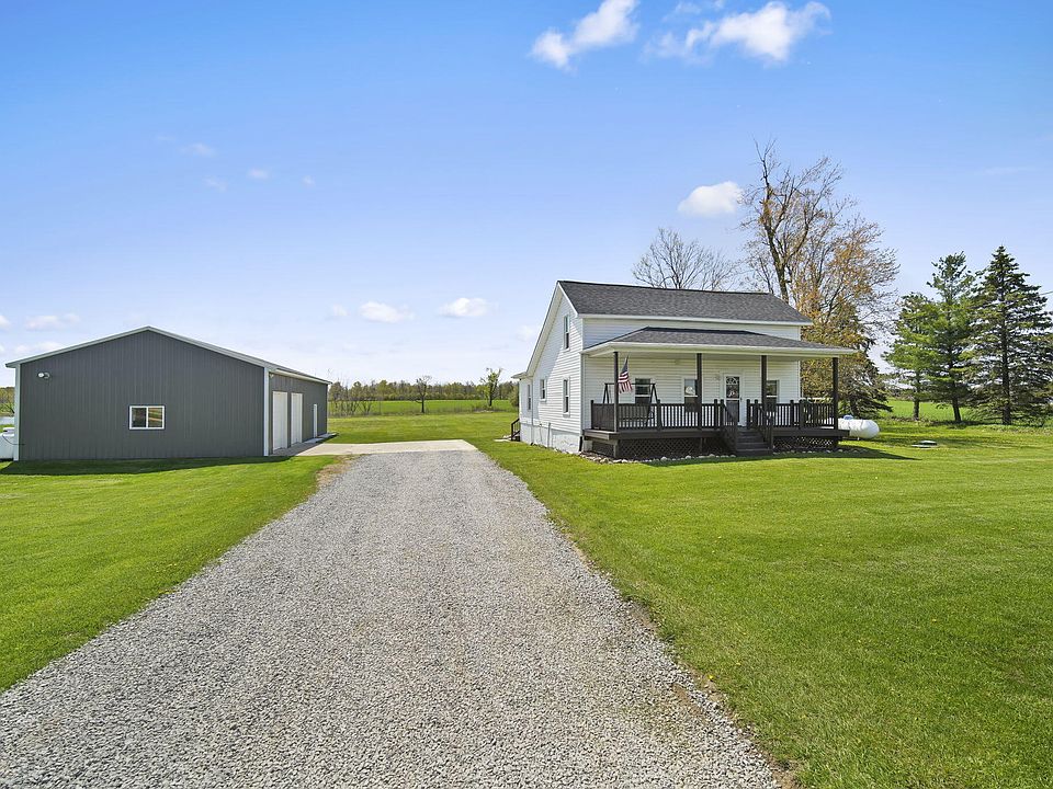 Adorable Home with new insulated pole barn nestled on 1.64 Acres and surrounded by fields and nature. The inviting front porch and rear deck are just waiting for you to enjoy! Beautifully remodeled in 2016, this move-in ready home offers a great open floorplan including a large living room, family room & spacious dining area. Main floor Primary w private full bath tucked nearby. Laundry and 2nd full bath is just inside the back door. Upstairs find 2 spacious bedrooms and a half bath. Full ''Michigan'' basement w/concrete floor houses storage, mechanicals & Radon Mitigation system. New in 2019 the 55x29 heated pole barn w/2 garage doors & openers. They use for play area for the kids & adults adding living space. Close to Adrian yet on a secluded Road & surrounded by fields