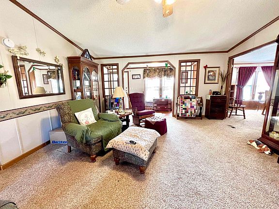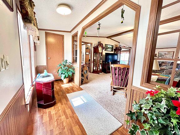 This captivating 3-bedroom 2-bath Manufactured Home is a special New Harmony find. The home is found on a pleasant street. The proximity to nearby Town of New Harmony and Mount Vernon makes for a low-travel commute. The generous property surrounding the primary structure provides plenty of space to enjoy the outdoors. Savor pleasant weather days from the breezy rear porch. The property site also includes two large detached garages. Inside, the home contains a surplus of comforts. The roomy kitchen features inspiring counter space and major appliances. A classic island configuration maximizes workspace and flexibility. As a sanctuary to relax at night and recharge for tomorrow, the main-floor primary bedroom is where to be. In addition to the convenience of the private bathroom, you will find plenty of closet space and nice touches. The other 2 bedrooms, with plenty of closet space, offer the convenience of ground floor accessibility. A driveway with ample accommodation for visiting vehicles leads to 2 detached two-car garages. Don't let this be the one that got away.