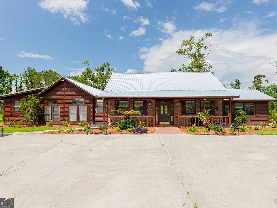 Stunning, move-in ready cabin on 22 acres!! Potential downstairs IN-LAWS Suite!! Looking for something more unique than a white farmhouse? The aesthetic and coziness of a cypress cabin but the conveniences of modern life? Then this is your future vacation home or primary residence!! NEW METAL ROOF. NEW CARPET upstairs and REFINISHED WOOD FLOORS downstairs. Brick pavers grace the floor of the enclosed sunroom off the living room to add charm and durability. The house cannot be viewed from the main road and offers quiet and privacy. Enjoy fishing or watching sunrise/sunset from the dock on your private pond. The back deck with grilling station is an entertainer's dream with plenty of room for everyone to spread out (or to watch the deer walk around the pond!) With its circular driveway, parking will never be an issue when hosting! Want a private driveway leading out to Hickory Grove Rd? This property has the land to do that WOW! Want to bring the group inside? There is space to spread out there as well! Open concept living room with cathedral ceiling offers a loft style fourth bedroom that could easily double of crafting, office or reading space. Between the open living space, wide front porch, screened in back porch etc. there are endless options for hosting. All of the custom, built in cabinetry throughout and wood, herringbone feature wall in the dining room are sure to impress! Bedrooms are split floorplan. Set up of bedroom + butler kitchen + bath with walk through into another bedroom/office/sitting room creates the perfect layout for an IN LAW SUITE!! This is a RARE find and the opportunity to own a property that is truly a unique destination home - but yet less than 20 mins into town. Sellers offering one year HOME WARRANTY.