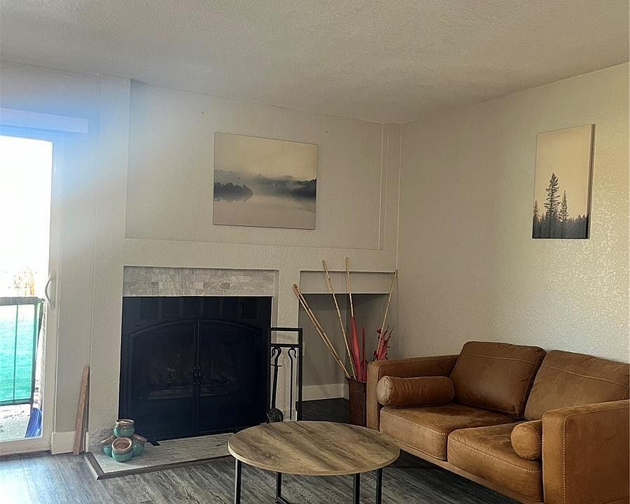Step inside to discover a cozy living space featuring a warm and inviting wood-burning fireplace, perfect for chilly evenings. The living area opens up to a private balcony where you can enjoy your morning coffee while taking in the tranquil greenbelt views.
