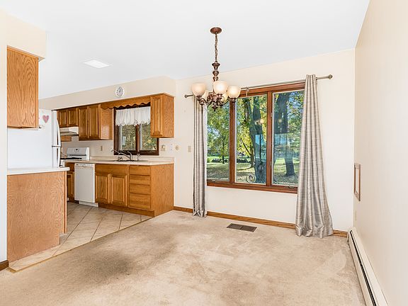 Enjoy Country living in this charming ranch home situated on a spacious .84-acre level lot with mature trees. Step inside to discover a cozy and inviting ranch home, thoughtfully designed to embrace the joys of single-level living. The spacious living areas are ideal for both everyday comfort and entertaining guests. The open floor plan allows for a seamless flow between the living room, dining area and kitchen. New light fixtures, refrigerator, water heater, sump pump, radiator heat, and water filtration system within the last 6 years are comforting updates! A main floor laundry, two bedrooms and a full bath complete the main level. A full unfinished basement is a clean slate with plumbing already roughed in for a 2nd bathroom. A standout feature of this home is the extra-large deep attached 2.5 car garage, providing ample space for your vehicles, tools and storage needs. Plus, there's plenty of additional parking available for guests. Want fun? Take your family around the corner to Kuiper's Apple Orchard. This location is so great- feels like your worlds away but it's Just a few minutes drive to the quaint town of Elburn & easy access to Metra. Just a short 20 minute drive from all that Geneva has to offer as well! Home being sold "AS IS" part of an estate- carpet and paint will make this one shine!