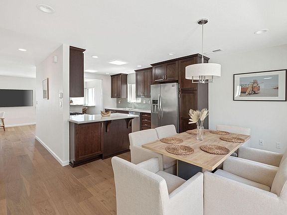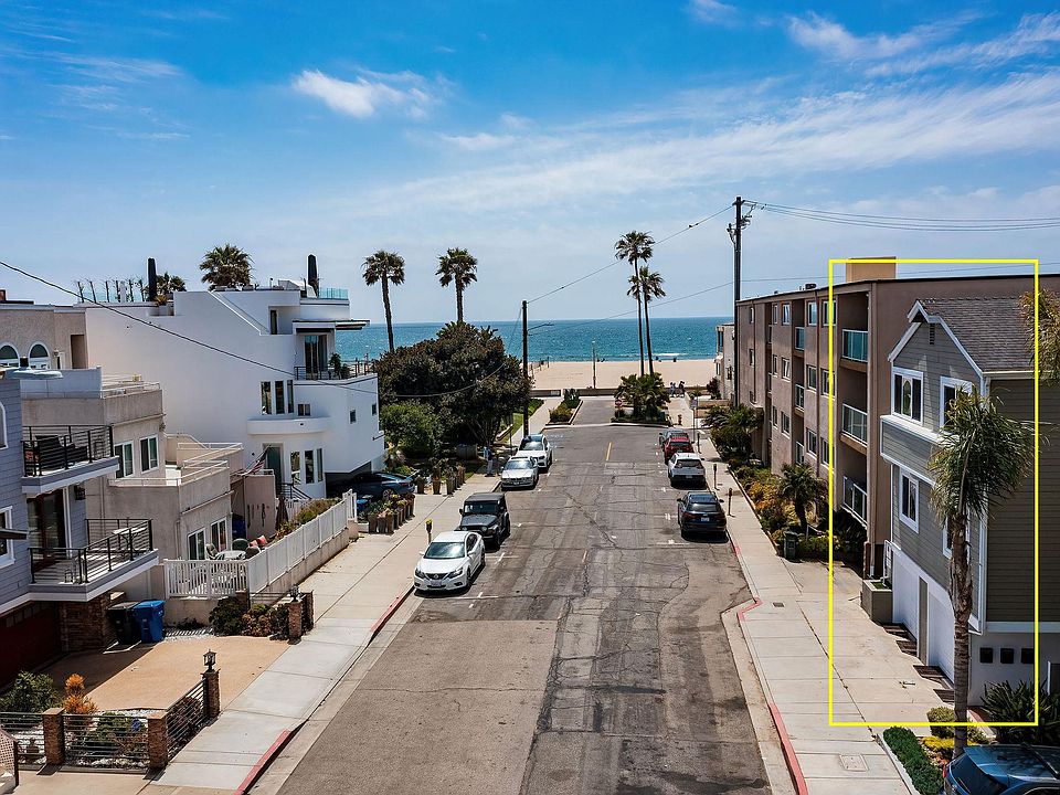 Steps to the World-famous Strand and downtown Hermosa Beach. This ocean view property is cozy but a classy furnished rental, that includes 4 bedrooms and 3 baths. Property has been recently remodeled with new furnishings, hardwood floors and other amenities creating a luxurious beach home. The top floor has an ocean views and views of the Hermosa Beach Pier. The living room has large sectional, 65" flat screen TV and breakfast area for looking out to the spectacular views of the beach. The kitchen has everything you need to make a gourmet meal, plus all amenities. There is a formal dining area with expandable table that seats 8 persons. A small balcony for BBQ and lounging is on this level plus bathroom. Second level has three bedrooms, a master bedroom with attached bathroom, shower and double sinks. And two additional bedrooms that share a bathroom with a shower/tub. Bottom level includes an additional bedroom with at home office area. Property has AC, laundry area and two car garage. You are steps away from an array of beach activities to include, beach volleyball, surfing, jogging, biking, and skateboarding. Downtown Pier Ave. includes many restaurants, shopping, grocery stores, spas and more just a few steps from your front door! There are three properties on a lot.