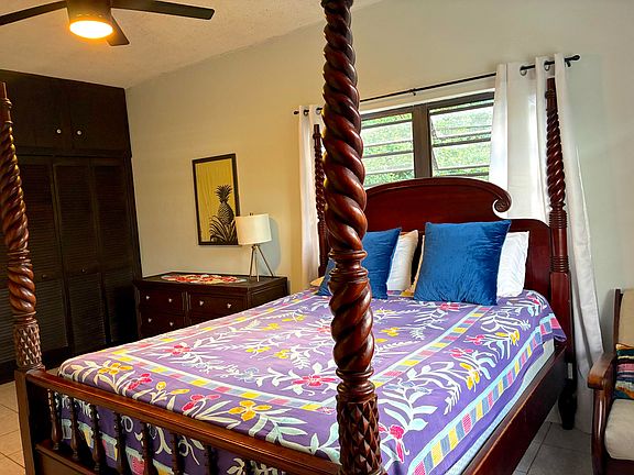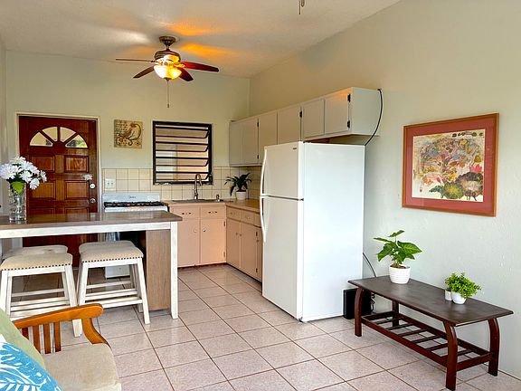 Pet friendly, 2-Bedroom, 1-bath, fully-furnished updated apartment includes water, electricity & Wi-Fi for a flat rate of $150/MO. Laundry room, washer/dryer, private patio & private off-street parking included. $250/pet one time fee + $25/MO/pet rent fee. Small, trained domesticated pets under 30 lbs upon approval by Landlord. Located in a residential neighborhood with tranquil sea & lush tropical views minutes drive to grocery stores, gas stations, banks, salons, restaurants, a 24/7 gym & more!