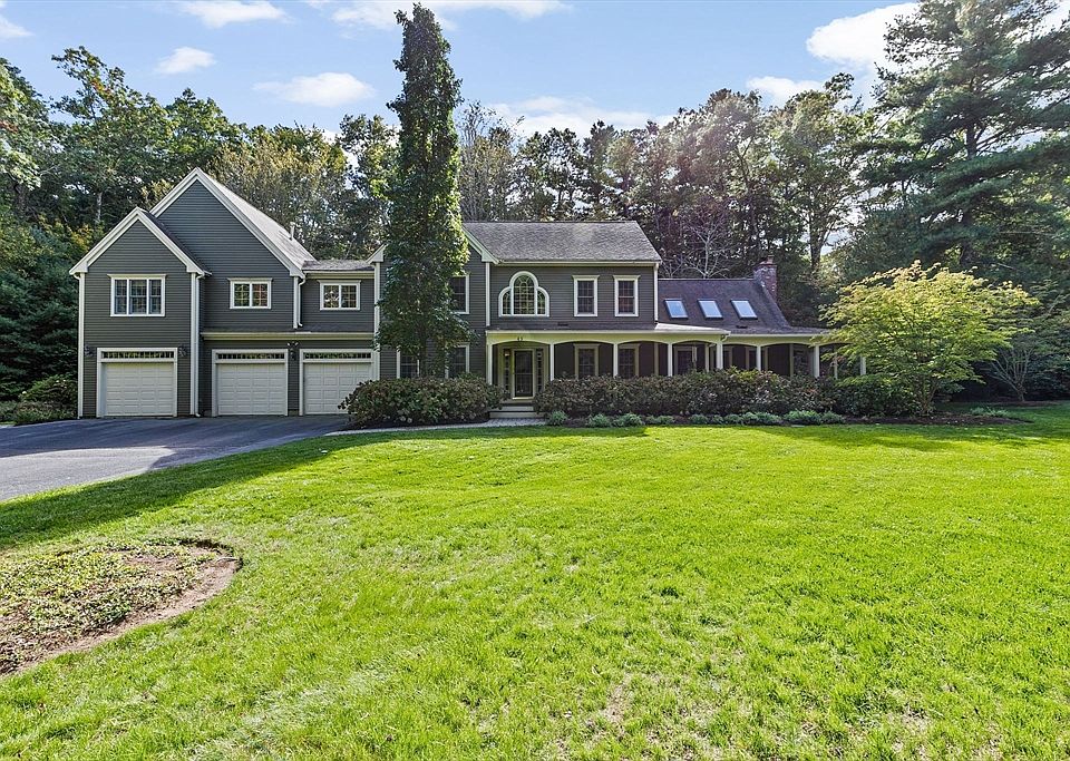 A wrap around, lighted Farmers Porch welcomes you to this stunning custom Colonial nestled in highly desirable Chiltonville. Close to beach, highway, and amenities, this spacious and private residence offers exceptional versatility, comfort, and charm—perfect for multi-generational living or those seeking extra space. Chef’s kitchen features custom cabinetry, Miele double wall oven, Wolf range with hood, large island, built in office, opening to family room with hardwood floors, cathedral ceiling, and fireplace. French doors lead to a mahogany deck, stone patio, firepit, stone walls, elevated pergola, ideal for outdoor entertaining. From the 3 car garage, enter a mudroom with closet and storage, and pass the large walk-in Pantry. Formal living and dining rooms provide elegant spaces for gatherings. 4 beds and 2.5 baths in the main home, plus a 5th bed, full bath, laundry, in in-law. 3rd floor bonus room, wired for surround sound, whole home generator, outdoor shower, shed, irrigation.