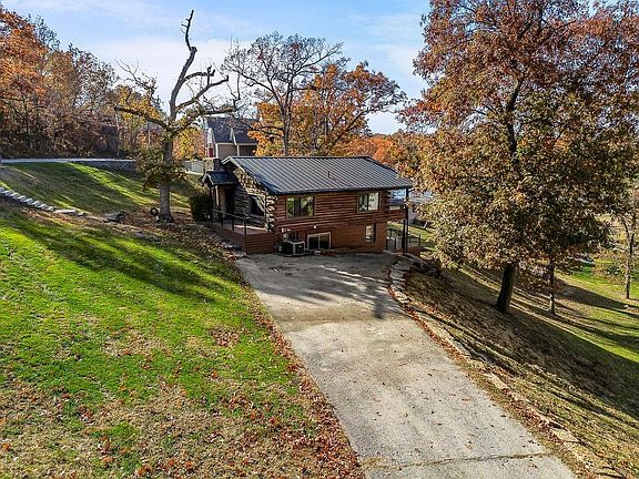 Lake Lotawana's one of a kind, coveted log cabin! Perched on three lots, nearly a 1/2 acre of gorgeous lakefront property with an expertly utilized interior space. The main level greets you with gorgeous, recently refinished 5" wide hardwood floors, a cozy living room that opens to an updated kitchen with quartz countertops and an island with seating. The open, wide staircase leads you to the lower level walk-out that has been completely remodeled in 2022. A modern gas fireplace warms the room along with a bar nook with a mini-fridge and bottle storage. Two spacious bedrooms with egress windows and a full bath are also located in the lower area. The finishes have been constructed with very high quality material and workmanship. The exterior is PERFECT for entertaining. Gorgeous sunset views from the two brand new decks, a firepit area and a private dock with an electric, covered shore station lift. A calm cove, just off the main channel, safer for playing in the water and less dock wear and tear. Improvements galore! Since 2021, HVAC, tankless water, windows, metal roof, flooring, fireplace, electric panel, sliding doors, and decks. Lifetime warrantied foundation piers installed for a strong, sturdy structure. Plenty of space to spread out and not hit elbows with your neighbors and parking for up to 7-8 vehicles, a rarity in Lake Lotawana. This sale includes three lake front lots, the possibilities are endless to build a garage or another home. Lake Lotawana is a sought-after location with Kansas City's only waterfront restaurant accessible by boat. Take your golf cart just a few miles away to the community park, tennis courts, restaurants, and coffee shop. There is always something to do in this community; fishing tournaments, ski, sailing , kayak and community events, and so much more.