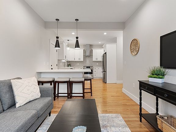 QUALITY 2 Bedroom, 1 Bath Condo conversion w/2 Deeded parking spaces is sure ot impress! A Beautiful project, boasting better finishes than million dollar new construction - literally. Built w/high-style & energy efficiency in mind, it's been gutted to the studs, w/brand New plumbing, all Electrical & pricey Spray Foam Insulation. Offering highly efficient New Gas FHA Heat & Cent Air, On-Demand Gas Hot H20 & Roof. Vinyl Siding, thermal Windows, TALL ceilings, awesome Lighting & REAL natural Oak Flooring throughout. Beautiful open floor plan has a GORGEOUS Kitchen w/custom cabinetry, Quartz counters & premium GE Cafe appliance suite w/French door Refrigerator, 5 Burner Gas Range, quiet Dishwasher, contemporary Vent Hood & stylish tile Backsplash. 2 good Bedrooms & the Designer Bath w/oversized custom tile Shower w/Kohler fixtures perfectly complete the unit. Reasonable Condo Fee & Great Locale! Close to T, Encore, Bike Path, Breweries & more - come discover all Everett has to offer!!