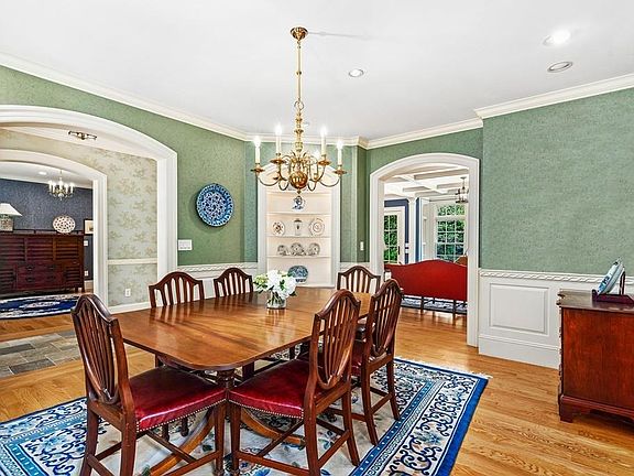 Set on a gorgeous, private lot in a coveted neighborhood, this stunning, custom-built home will take your breath away. Designed with meticulous attention to detail, the home boasts exquisite millwork and finishes, high ceilings, gleaming hardwood floors, light-filled spaces and generously-proportioned rooms. The first floor features a welcoming foyer, which flows into a living room and an elegant dining room - both with lovely views to the outside. There is a well-appointed, marble kitchen, a family room with gas fireplace and custom built-ins and an oversized mudroom that includes space for a pet shower! The main level also includes a handsome office with gas fireplace, luxurious master suite plus an ensuite guest room. The second floor offers three spacious bedrooms, two full baths, a second family/sitting room and play area. The outdoor space, with its landscaped grounds, woodland views, waterfall and bluestone patios, is perfect for entertaining or peaceful relaxation. A must see!