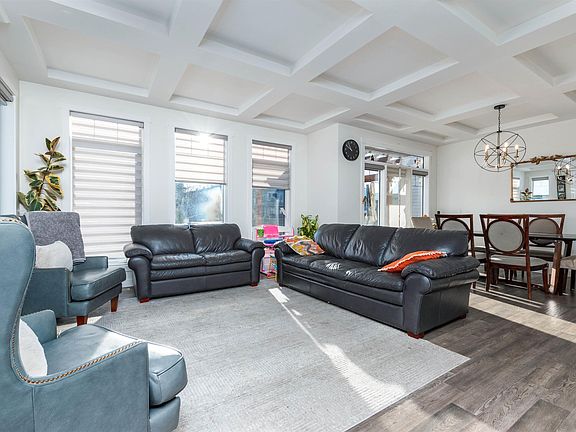 Fabulous open conceptOpen dining areaGorgeous kitchenWhite cabinetryQuartz countertopsHuge islandCoffered ceilings