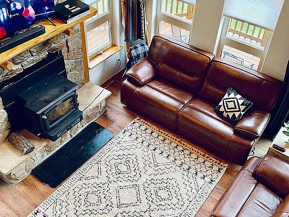 Chalet cabin home in a peaceful setting close to Monte Verde Lake. This 3 bedroom, 2 bathroom, single-car garage home has a wood burning stove insert in the fireplace for efficient heating plus a forced air furnace. A covered breezeway between the garage and home makes outdoor living possible in all seasons. The home is sold fully furnished and equipped. There is laundry room with a full size washer and dryer. Kitchen was recently updated with high end finishes. Easy access is mostly paved and flat. This is a flat lot with easy access on paved roads. New flooring, paint, and appliances installed this year. High Speed Internet.
