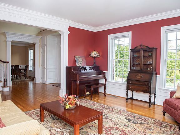 Set on a quiet cul-de-sac in one of Avon's most sought-after neighborhoods, this single-owner colonial has been lovingly maintained and offers timeless appeal with modern comfort. Extensive millwork and lustrous wood flooring span the main level, filling each rm with warmth and character. Nine-foot ceilings and large windows create an airy, light-filled atmosphere throughout. The grand two-story foyer opens to the formal dining rm and living rm, highlighted by marble fireplace leading to a library with custom cherry built-ins. At the heart of the home is a chef-inspired kitchen w/granite countertops, high-end SS appliances, & a large island designed for cooking & entertaining. The casual dining area, framed by gliding doors, overlooks a private backyard with an expansive stone patio, ideal for al fresco dining or gatherings with friends. The spacious family rm features a dramatic floor-to-ceiling stone fireplace & crisp coffered ceiling. Completing the main level is a powder room & an additional half 1/2 bath off the mudroom. Upstairs, the luxurious primary suite boasts a vaulted tray ceiling, large walk-in closet, dressing room, and spa-like bath with a tile/marb shower, marb double vanity, jetted tub, & gleaming tile floors. Four additional generously sized bedrms complete the second floor. Two share a J&J bath, while the other two are connected by a dual-access bath w/entries from both the guest rm and hall. A laundry rm w/utility sink finishes the upper level. The unfinished basement includes a painted section suitable for casual use & roughed-in drainage, offering excellent potential for future finishing. One of the most remarkable features of this home is its location-quietly tucked away yet close to shopping, dining, schools, medical facilities, & more. This exceptional property, blending classic charm with thoughtful updates, offers a rare opportunity to experience the very best of Avon living. Agent/Owner