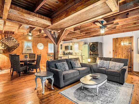Experience the magic of this unique, warm and cozy cottage nestled within the Coosawattee River Resort. Cottage is complete with 1 Queen, 1 Full, 1 Twin Sofa Bed, new kitchen, washer/dryer, fireplace, deck w/outdoor dining table, gas grill, outdoor fire pit, and 8-person hot tub. Resort amenities include 2 outdoor pools, indoor heated pool, rec center w/gym, arcade, basketball, tennis, pickle ball, billiards, mini golf, etc. Enjoy tubing, kayaking, fishing and swimming on the river.