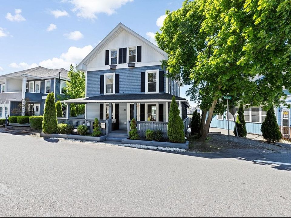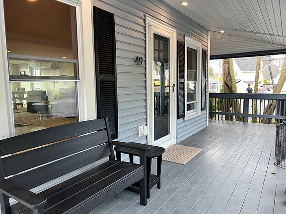 Outside, there's a large deck overlooking the water, with a seating and dining area, including a grill. The fenced backyard has a patio with a firepit, and is a nice spot for relaxing or hanging out. There's also a front porch with a seating area. Parking includes two off street dedicated spots, with extra room on the street if needed.