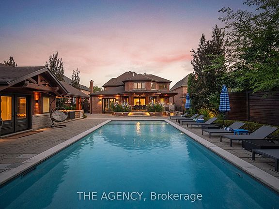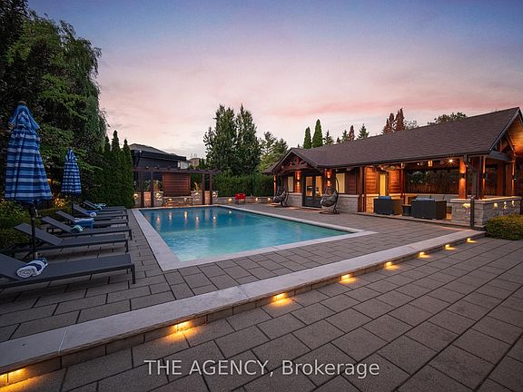 Welcome to 49 Bayside Court! A Masterpiece of Bespoke Design and Unrivaled Craftsmanship. This exceptional residence offers a fully customized floor plan spanning 4,747 sq. ft. above grade, plus an additional 2,846 sq. ft. of meticulously finished walk-up basement space. Boasting 4 spacious bedrooms and 6 luxurious bathrooms, every inch of this home has been thoughtfully curated for elevated living. Step into the elegant sunken family room, complete with a custom-designed display bar. Rich, site-finished hardwood flooring flows seamlessly throughout, complemented by exquisite custom wall paneling and top-tier millwork at every turn. The main floor also features a secondary prep kitchen-perfect for entertaining-alongside state-of-the-art appliances. Retreat to the lavish primary suite with spa-inspired ensuite, featuring radiant heated floors and steam shower. Heated flooring also extends throughout the basement for year-round comfort. Soaring ceilings throughout-9 ft. on the main level, 8 ft. on second level, and 10 ft. in the basement-enhance the sense of grandeur. The fully finished walk-up basement is a private sanctuary unto itself, complete with a fully equipped gym, a third gourmet kitchen, and indulgent steam shower. Outside, the professionally landscaped backyard transforms into your own private resort. Enjoy an inground salt water pool, built-in BBQ, and a custom Douglas Fir Cabana equipped with two full bathrooms, its own washer and dryer and outdoor shower. A heated, three-car garage includes a two-way car stall, integrated storage units and a premium wall system for optimal organization. For peace of mind, all main floor and basement windows are fitted with 3M security film. Every detail of this home reflects luxury, innovation, and the finest quality craftsmanship.