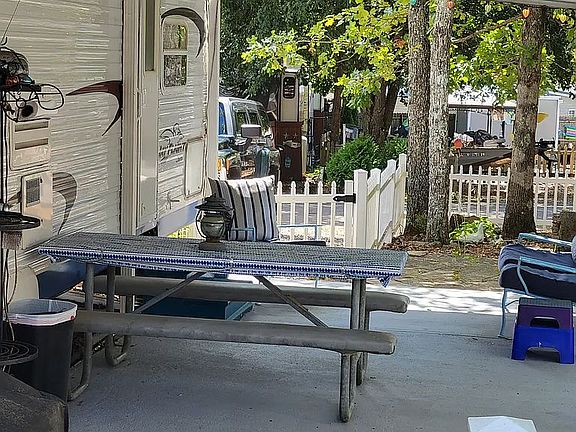 Located in Holiday Out RV Park. Great Location just a few steps from the beach, pavilion, and recreational areas. Site is E-20. Has a 2005 Jayco camper with 1 slide out, 2 entry doors, 1 bedroom, and sleeps 6. Also has attached awning, concrete patio, and fenced in lot. Please call or text 615-351-9585 with any questions.