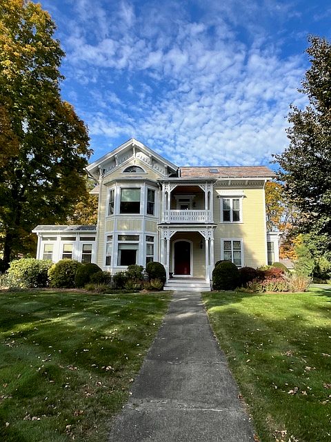 Grand Victorian home with first floor two bedroom with large bright living area and eat in kitchen with stove, refrigerator, dishwasher, microwave and ample cabinet and counter space. Living areas have two decorative fireplaces and hardwood floors and nice stained-glass windows. Unit comes with off street parking for a maximum of two cars. Landlord provides snow removal, trash and recycling removal, lawn care, water and sewer. Located close to center of Florence and bike paths. Listing 714