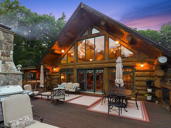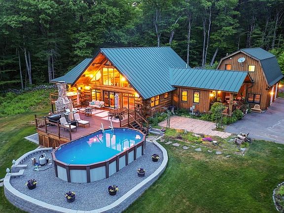 Close to Wachusett Mountain, this prestigious log home is perfectly nestled in the woods of Princeton MA. This one of a kind log home was built by Legendary Log Crafters of Collingwood, Ontario Canada. If you are searching for a log home for sale near Worcester MA this is the one! This home has a flowing, open floor plan with cathedral ceilings and white pine logs. No details were missed including Scandinavian scribe log corners! The living room which is open to the dining and kitchen has a large pellet stove to curl up in front of. Modern amenities including high speed internet, brand new Bosch appliances, ample storage space, and granite counter tops. A perfect blend of beautiful landscaping, gardens, covered and uncovered deck space, outdoor fireplace, hot tub and pool area for social distancing or entertaining. If you are looking for a private space near hiking trails on almost 5 acres of land, this log home is a must see! Conveniently located approximately 15 miles to Worcester.