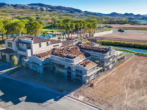 Closing costs incentives available. If buyer selects options beyond what is already ordered for home, price will be raised accordingly. Step through the striking pivot door & into effortless elegance, where uninterrupted sightlines draw your gaze to the tranquil waters of Lake Las Vegas. Set within an exclusive country club enclave, this home pairs refined design with breathtaking natural beauty. The great room unfolds in seamless harmony with the outdoors—perfect for elevated lakeside entertaining. A gourmet kitchen with island cooktop, beverage center, & walk-in pantry for every need. A secondary bedroom & AV lounge offer flexibility, while the primary suite is a retreat unto itself: dual vanities, freestanding soaking tub, & a high-glass shower capturing panoramic desert & water views.