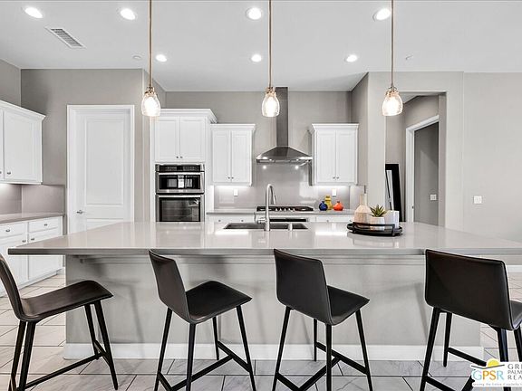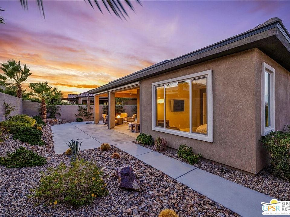 Welcome to the premier 55+ community of Del Webb Rancho Mirage, where resort-style living blends seamlessly with refined design. This desirable Phase 1, Plan 6 PRESERVE floorplan with a Prairie facade offers 2 bedrooms, 2 bathrooms, and a versatile den/flex spaceperfect for a home office, media room, or creative studio. Step inside to discover custom window treatments, high-end Minka ceiling fans, and elegant 12"x24" tile flooring throughout. The open-concept design centers around a chef's kitchen featuring an upgraded Whirlpool appliance package with dual ovens, premium cabinetry with dovetail joints and soft-close drawers, 42" staggered upper cabinets, quartz countertops with full backsplash, a spacious island with pendant lighting with ample seating, and a walk-in pantry. The kitchen flows effortlessly into the generous living and dining areas, highlighted by dual upgraded sliding doors that open to an extended covered patio - complete with electronic zipper shades, expanded hardscape, offering plenty of room for outdoor dining, lounging, or entertaining. Your private retreat awaits in the spacious primary suite, where the ensuite bath offers upgraded vanity sconces, dual sinks with quartz countertops, premium cabinetry, a large walk-in shower with quartz surround, and a generous walk-in closet. The guest bedroom and enclosed den/flex space (with stylish dual barn doors) are thoughtfully positioned on the opposite side of the home for added privacy, alongside a full secondary bath. Additional highlights include leased SOLAR ($58.16Mo), an expanded laundry room with utility sink and extra cabinetry, plus an oversized, fully painted garage with space for an extra-large vehicle and/or additional storage. Within the gates of Del Webb Rancho Mirage, you'll enjoy an active, vibrant lifestyle with access to a state-of-the-art clubhouse, resort-style pool and spa, fitness center, and a wide range of activities including bocce ball, tennis, pickleball, and more. Come experience luxury, comfort, and community in one of the desert's most sought-after addresses.