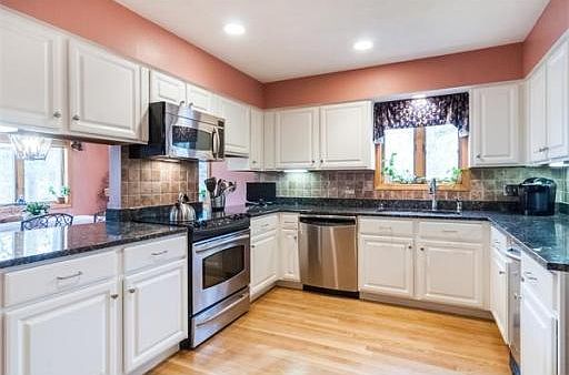 Contemporary Ranch on a beautiful tree lined street in Chestnut Hill on Newton/Brookline border. This property boasts 4 bedrooms and 3.5 bathrooms. Fantastic home to entertain in with the modern kitchen and newer cabinets, granite countertops, GE Profile stainless steel appliances. Corner Eat in Kitchen with wonderful light exposure. Open Floor Plan makes an ideal space to entertain with friends and family, exposed wood beams, walkout deck plumbed for gas grills, ample sized Dining Room, 20'+ Cathedral Ceilings in Living Room with skylights. First floor Master Bedroom with walk-in closet and en-suite bathroom. 3 generously sized bedrooms with great closet space on the top floor with a full bathroom and skylight for added natural light. Basement has a full bathroom, bar area, and sitting area and more storage. Memorial Spaulding Elementary, Brown Middle, and Newton South High district. Close to shopping at The Chestnut Hill Mall, Route 9, VFW PKWY, Downtown Boston & More!