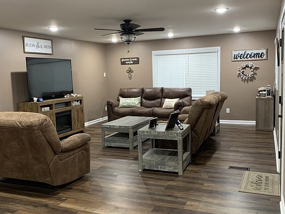 Barn with stablesNeutral paint colorsStainless steel appliancesLarge covered patioExtra large pantrySeparate dining roomLaminate wood flooring