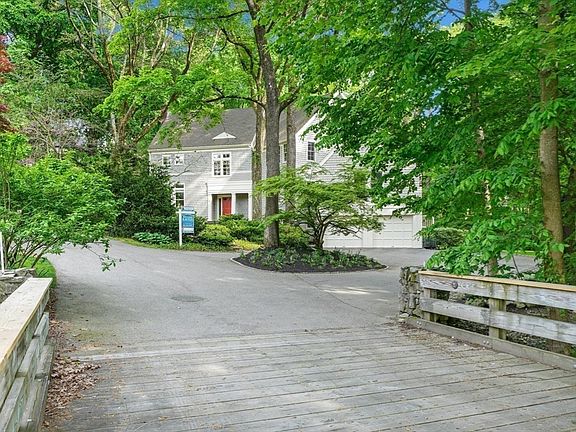 New Price! A magical setting awaits you as you cross the private bridge over Hyde Brook to this extraordinary property surrounded by mature trees and beautiful shrubbery, at the end of a cul-de-sac. Vermont style living minutes from the Mass.Pike & downtown amenities, offering top rated Newton schools. This 6 bed, 4.5-bath shingle-style house features a light-filled first floor with tall windows, soaring ceilings, dining room & living room with fireplace, a chef’s kitchen, w/ custom cabinetry, adjacent family room and breakfast room, which opens out to an expansive deck and private yard. 2nd floor offers a large primary suite with spacious walk-in closet, luxurious bathroom and private deck. Three additional large bedrooms are on this level. A fabulous 3rd floor has an expansive sky-lit space, for an art studio, playroom, or guest room. Lower level includes media & fitness rooms. Separate wing w/ private entrance has two offices with a half bath; can also be guest or au-paire suite.