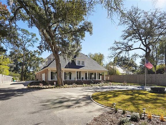 Welcome to your dream home! A beautiful Acadian nestled beneath majestic oak trees draped in moss, offering timeless Southern charm and a peaceful stunning view of the river. Set back on 1.61 acres with a circular driveway, this home combines elegance, comfort and modern updates throughout. Step inside to find gorgeous red oak hardwood floors flowing through the entire home. The versatile floor plan offers two options for the primary suite, one upstairs and one downstairs. The downstairs suite is ADA compliant, while the upstairs suite boast a spacious sitting area and a luxurious bath featuring both an oversized shower and jetted tub. Enjoy multiple living spaces, including a formal living room, formal dining room and a cozy den with a gas stone fireplace. The spacious kitchen impresses with quartz countertops and the total stainless Thermador appliance package including double ovens and side by side refrigerator/freezer. There is an abundance of cabinetry for organization, storage and everyday living. Outdoor entertaining shines here with a huge side patio, including a full outdoor bath and a covered rear patio. Other amenities include a boat loft only 2 years old and large enough to lift 2 boats Roof installed 2020, 3 HVAC units, kitchen 2020, downstairs 2022 and upstairs 2013. 2 tankless water heaters are only 3 years old and the 2 sheds are only 4 years old. This exceptional property perfectly blends classic Acadian charm with modern convenience, all in a serene waterfront setting!