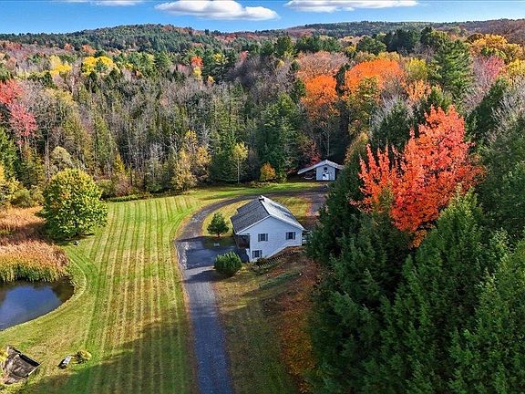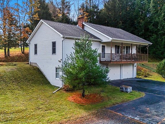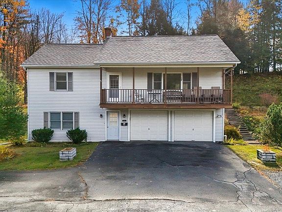 Set on 4.32 peaceful acres, this inviting Barre Town home offers comfort, space, and a scenic setting just minutes from local amenities. With 2 bedrooms, 3 bathrooms, and 1,664 square feet, it combines functional design with natural beauty. The main level features a bright, open kitchen with an adjacent dining room and living room, with a back deck off the dining room. Perfect for everyday living and entertaining. Both bedrooms are also located on this floor. The primary features an ensuite and a large closet space. Sip coffee on the front balcony to enjoy views of the charming pond, or relax on the back deck surrounded by wooded privacy. Downstairs, a finished walkout basement includes a versatile rec room with a full bath. The attached 1-car garage provides direct interior access, adding year-round convenience and additional storage. Just over the line from Barre City and close to the popular Cow Pasture walking trails, this property offers the best of both worlds: a tranquil country feel with easy access to town, shopping, and services—all within five minutes.