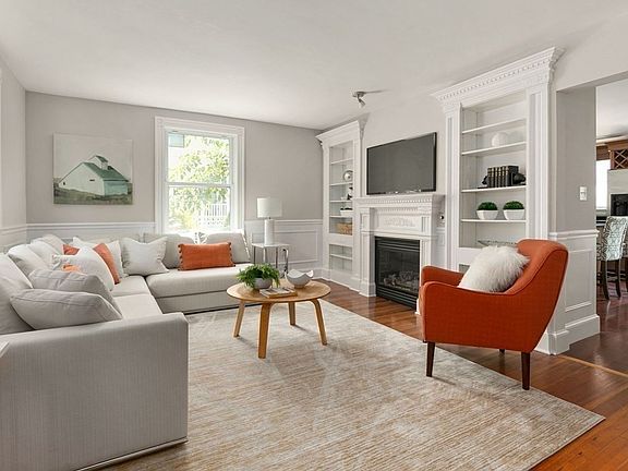 Elegant, free-standing condominium home set in a superb Cambridge location. By the shade of a Japanese maple tree, enter into the living room distinguished by custom, inset shelves framing a gas fireplace with detailed onlays and dentil molding. The wainscoting continues into the dining area with the well-appointed kitchen and breakfast bar positioned for ease of entertaining. A half-bathroom, access to both the generous deck and large, private basement complete the first floor. Upstairs the oversized primary bedroom boasts a cathedral ceiling and reclaimed pine flooring. An ensuite entrance to the full bathroom adds an extra element of luxury. The second bedroom plus a separate, sun-lit office allow for many different configurations. Enjoy an off-street parking spot and immediate access to public transportation, the Minuteman bikeway, the treasured Cedar Street playground and so much more. Comfort and convenience in abundance.