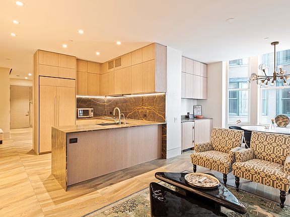 Life at 49 Chambers comes with access to a private landscaped rooftop oasis with multiple lounge and dining areas, sun decks, and indoor/outdoor kitchens. Indoors, the amenity suite spans a 50' lap pool, steam room, sauna, fitness center with Peloton bikes, yoga/dance studio, virtual golf simulator, children's playroom, tween lounge, catering kitchen, screening room, and residents' loungeall under the care of a 24-hour concierge.