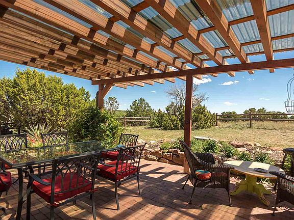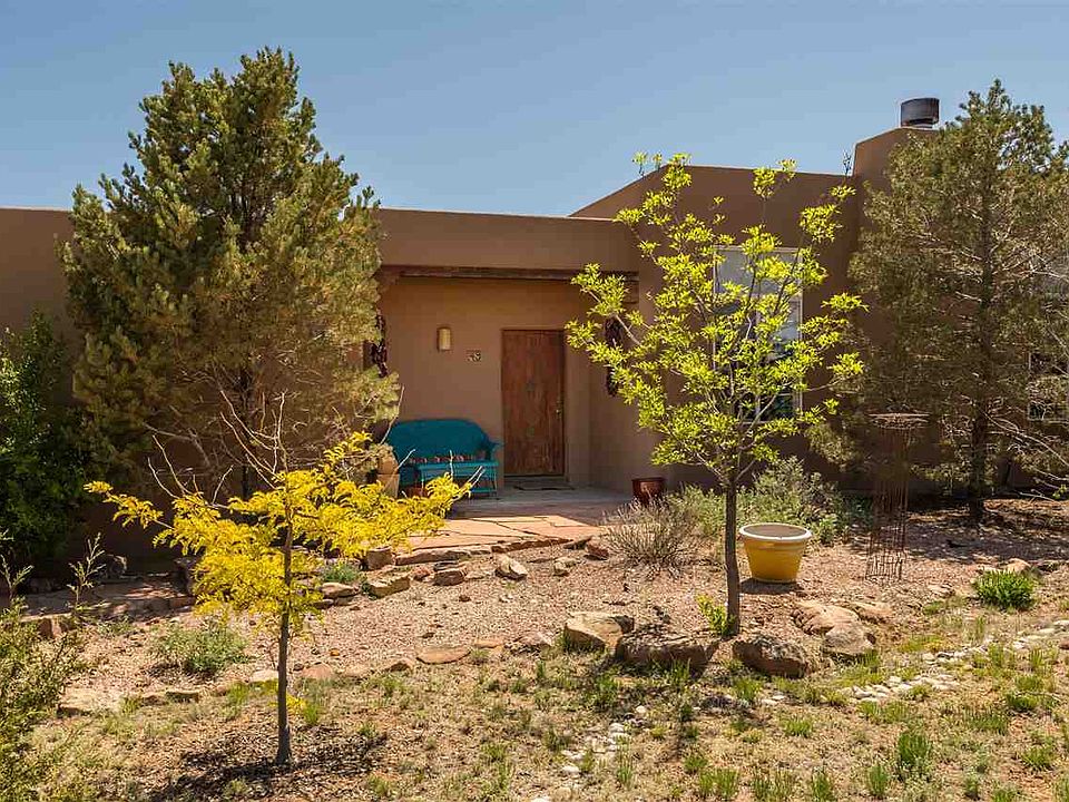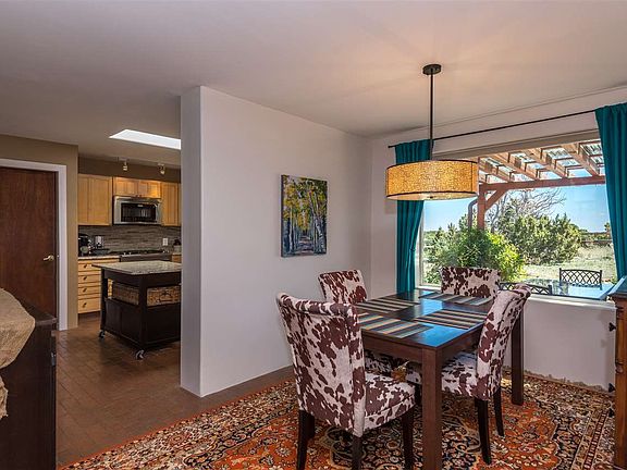 Great attention to detail is displayed throughout this lovely EJ Jennings designed and built single level home. From the moment you enter the sunny foyer you immediately see all the special touches that warm this home with personality. Touches such as decorator trim around the doors, brick floors throughout, build in book shelves, a Rumford fireplace, vigas and beams in the living room, and Talavera tiles in the bathrooms. The kitchen is delightful with new granite countertops, glass backsplash, stainless steel appliances, and a spacious pantry. The back portal is a great place to sip your morning coffee or relax at the end of the day. Home backs up to horse property and is sited for maximum privacy. Eldorado is home to miles of walking and biking paths, stellar K-8 school, convenient shopping, dining, summer time pool, amazing sunsets, and divine night skies. About 20 minutes to The Santa Fe Plaza. Choice!