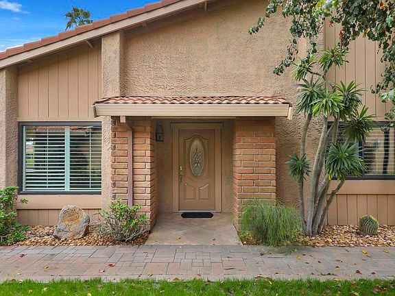 Stunning lakefront, golf-course property in the premier location of Chaparral Country Club! This beautifully renovated 3-bedroom, 3-bath condo offers panoramic views of the lake, tee, and green on the 9th hole. Thoughtfully redesigned from top to bottom within the last six years, no detail or expense was spared! Every finish is timeless, high-end, and impeccably curated. Enjoy 8-foot raised ceilings, ceramic tile flooring, a paver driveway and walkway, and an expansive tiled patio perfect for taking in the surrounding beauty. The gourmet kitchen features a dramatic 10-foot picture window, Corian countertops, a large island with custom roll-out storage, KitchenAid appliances, a state-of-the-art Samsung refrigerator, and a custom glass pocket door leading to the patio. The converted atrium offers additional living and entertainment space with a wine fridge, ice maker, glass-door cabinetry, and interior lighting. All bathrooms are luxuriously redesigned with spacious walk-in showers and premium fixtures. Additional upgrades include energy-efficient Pella windows with high-end shutters, remote-controlled roller shades on the living room sliders, a tankless water heater, NEW HVAC and a fully tiled 3-car garage PLUS a dedicated golf cart garage. Chaparral Country Club amenities include an 18-hole Ted Robinson Sr.–designed golf course, 21 pools and spas, tennis and pickle-ball courts, a fitness center, and a clubhouse with dining and lounge options. This is a rare opportunity to own a fully renovated, lakefront golf-course home in one of the most coveted locations in the community. A must-see!