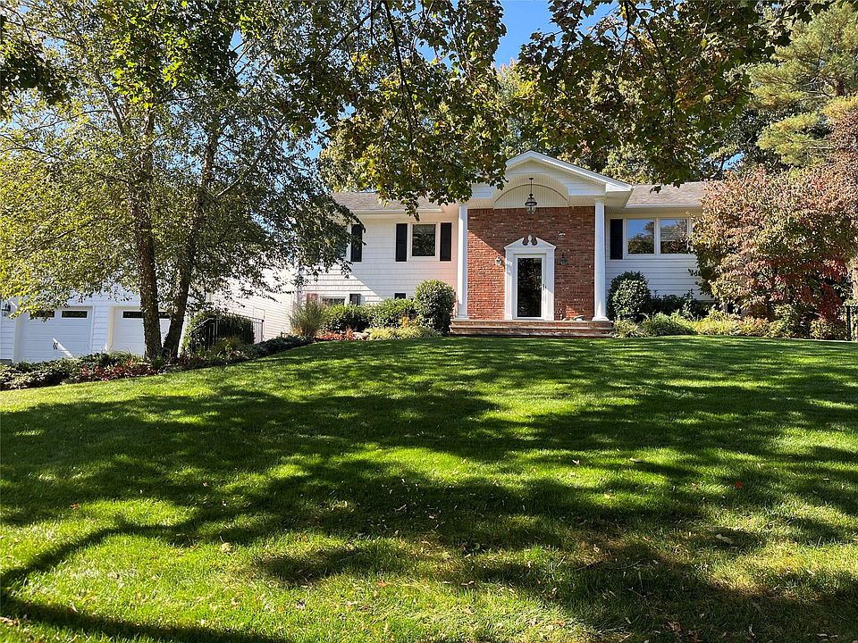 Welcome to 49 Cross Bow Lane in the Award-Winning, Blue Ribbon school district of Commack. Fabulous curb appeal. This grand home looks regal as it sits on the hill and has a separate 2 car garage that doubles as a covered patio in the yard overlooking the in-ground pool. Professionally landscaped with a large driveway this home really shows well. Located in the sought-after Candy Section of Commack the home is close to everything yet affords privacy on a wide, quiet street. Enter the home to the open plan of the first floor and sweeping, open staircase to the lower level. Beautiful hardwood floors throughout the house highlight the formal living and dining room. Welcome to your chef's kitchen! This kitchen was updated and expanded in 2012 with the cook in mind. Grand center island plays a great role in the entertaining of guests affording plenty of counter seating. Great appliances! The primary bedroom has a private ensuite bathroom. The other two bedrooms are nice sizes and the main bathroom has been nicely updated. Descend the staircase into the Great Room and enjoy the gas fireplace while watching TV. There is a private 4th bedroom overlooking the yard and a half bath. Lets not forget the side entrance leading into a bonus space that can be used as an office, playroom or gym. Separate laundry room. The yard is a private oasis. The beautiful in-ground pool is heated, saltwater and has a true hot tub. Grab some shade under the covered patio with an awning and there is a half bath by the pool so no one has to go into the main house. Plenty of space for activities on the lawn just above the pool with beautiful views! Roof - 2007, CAC 1 Zone - 2012. Boiler 2 Zones (oil), Cesspool - 2022, AMP 200, , Generator - 2012