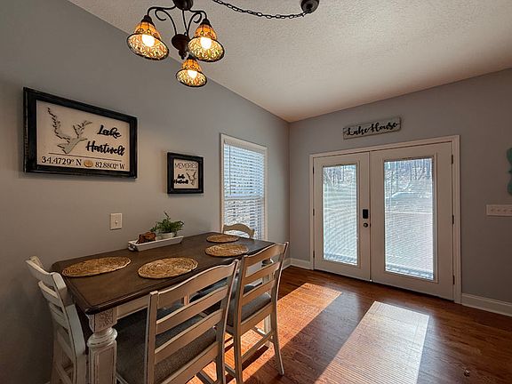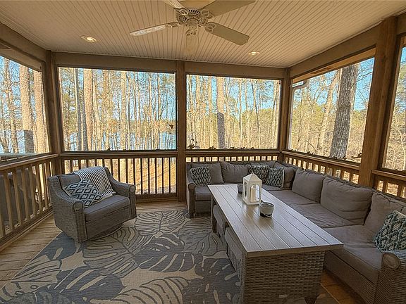 This great Lake Hartwell home is sited on a one acre lot near the Currahee Club. The front porch welcomes you to the great room which is adjacent to the granite kitchen with island and stainless steel appliances and the dining area. This room opens onto a screened porch overlooking the lake and connects to an open grill deck. The owner's suite is on the main level and includes a bath with double vanities and a walk-in closet. This level also has the laundry area and another half bath. Upstairs, there are two bedrooms and a full bath. You will also find a flex area suitable for an office, exercise or additional sleeping. There is a concrete path that leads to the covered slip dock on one of the lake's main channels (Tugaloo).