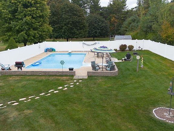 Escape to your private oasis with this stunning 4-bedroom, 3.5-bath colonial on 3+ acres! Summer fun in the expansive 40' x 20' in-ground pool! Enjoy gardening in established raised beds for vegetables & flowers! Pride of Ownership! Spacious remodeled kitchen - SS appliances, breakfast bar & a built-in desk. The family room showcases hardwood floors, a cozy gas fireplace with built-ins, two skylights, and a French door leading to a 3-season sunroom! Both the living & dining rooms also have hardwood floors. 4 Bedrooms upstairs - all freshly painted with new carpet. Main Bedroom has full bath and walk-in closet w/custom cabinets. The lower level is finished! , Separate entrance from the front door, kitchen, 3/4 bath, and large open area—perfect for guests or hobbies. Additional features include a 2-car garage with a walk-up unfinished area and a convenient walk-up attic for extra storage. Your dream home awaits! Make your appointment today!