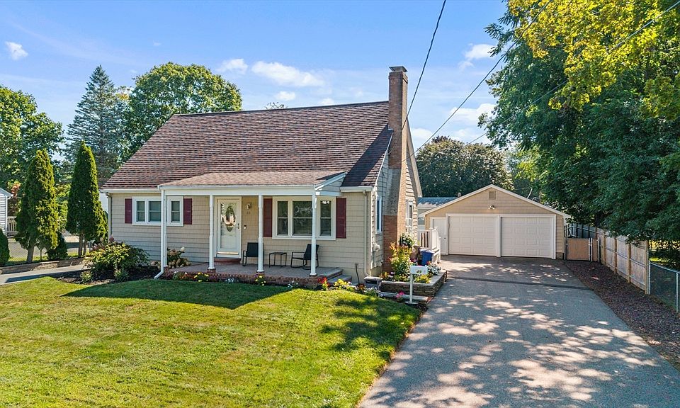 Classic 4 bedroom / 2 car oversized garage cape style home on beautiful side street. This home welcomes you with the farmers porch and double driveways! The first floor features a warm and inviting large living room with wooden mantel fireplace, master bedroom with double closets, updated kitchen with stainless appliances, updated modern bathroom, and a 2nd bedroom. The second floor includes 2 bedrooms and a 1/2 bath. The basement will provide a partially finished area perfect for entertaining and a clean/organized unfinished section with exterior access and updated heating system. The yard is perfect for grilling with a custom-built covered area, shed, fire pit area, fenced in yard, patio & an amazing oversized 2 car garage! This property has parking for 10 with 2 driveways and double garage space. This property speaks to all buyers and will not last. Showings begin at the OPEN HOUSE SAT. 9/6 & SUN. 9/7 12-1:30.