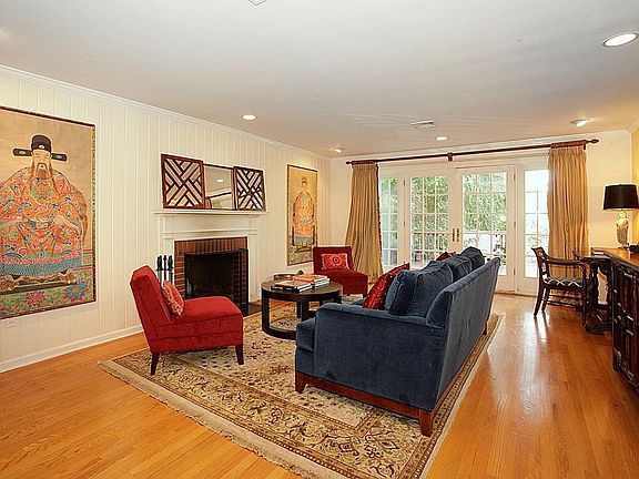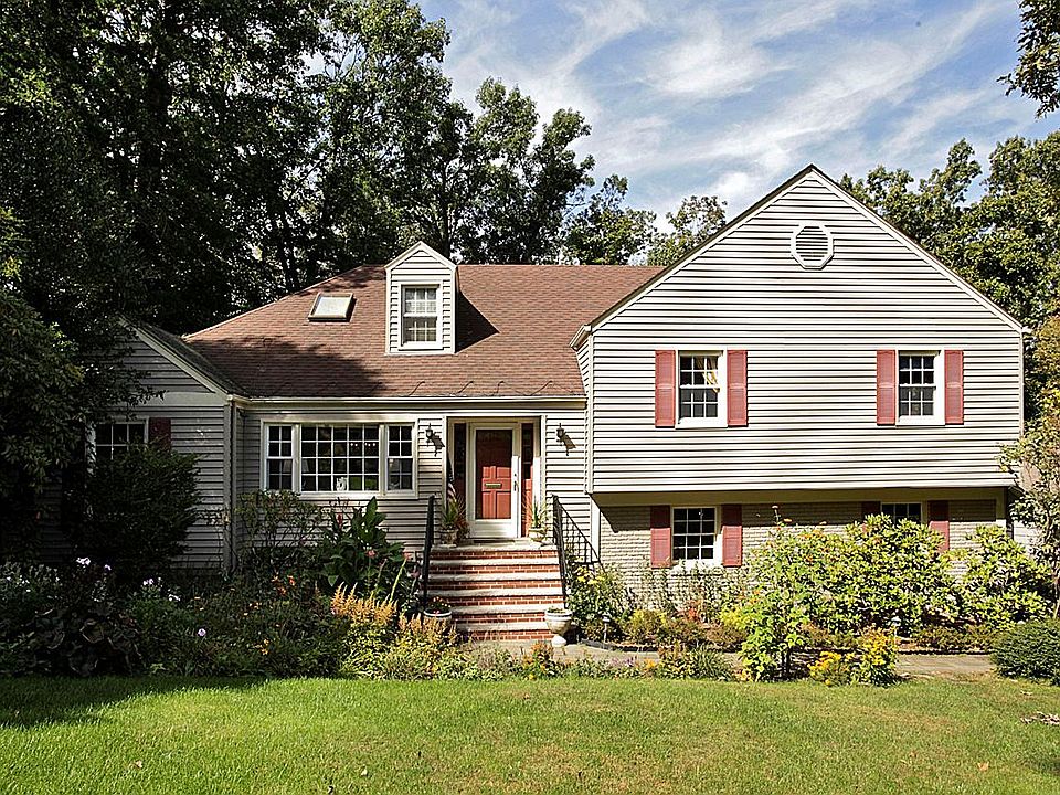 Amazing Space! This home packs wonderful living and storage space into its 5 usable levels. First Floor Family Room, generous deck accessible from LR and Kitchen. Two Master Bedrooms both with ensuite bathrooms. Ground Level Mud Room with built in cabinetry accessible from attached garage. Office spaces, powder room and outside access to newly designed rear patio space with artful plantings. Basement level with wood burning fireplace -- large areas for both pool table and recreation space. Built in lighted cabinetry. Flat and fenced rear yard.