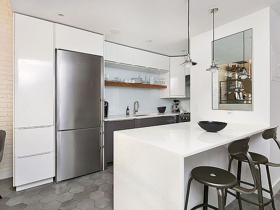 Set on a tree-lined block, this mint condition apartment features a beautiful eat-in chef's kitchen, separate living and dining room spaces, wood-burning fireplace, exposed brick, and high ceilings. Perfect for working from home, the apartment has a south-facing living room with great natural light. The apartment also features a renovated bathroom with a steam shower.