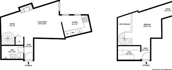 This striking and rather large real one bedroom duplex features high ceilings (both floors), newly renovated bathroom and chic kitchen with sleek countertops, a magnificent back splash, all custom made cabinetry in addition to superior and first-rate appliances such as dishwasher and stainless steel oven and stove, fridge, and microwave. There is plenty of storage in this top of the line property with the downstairs closet being extra deep and having custom built-in shelving.