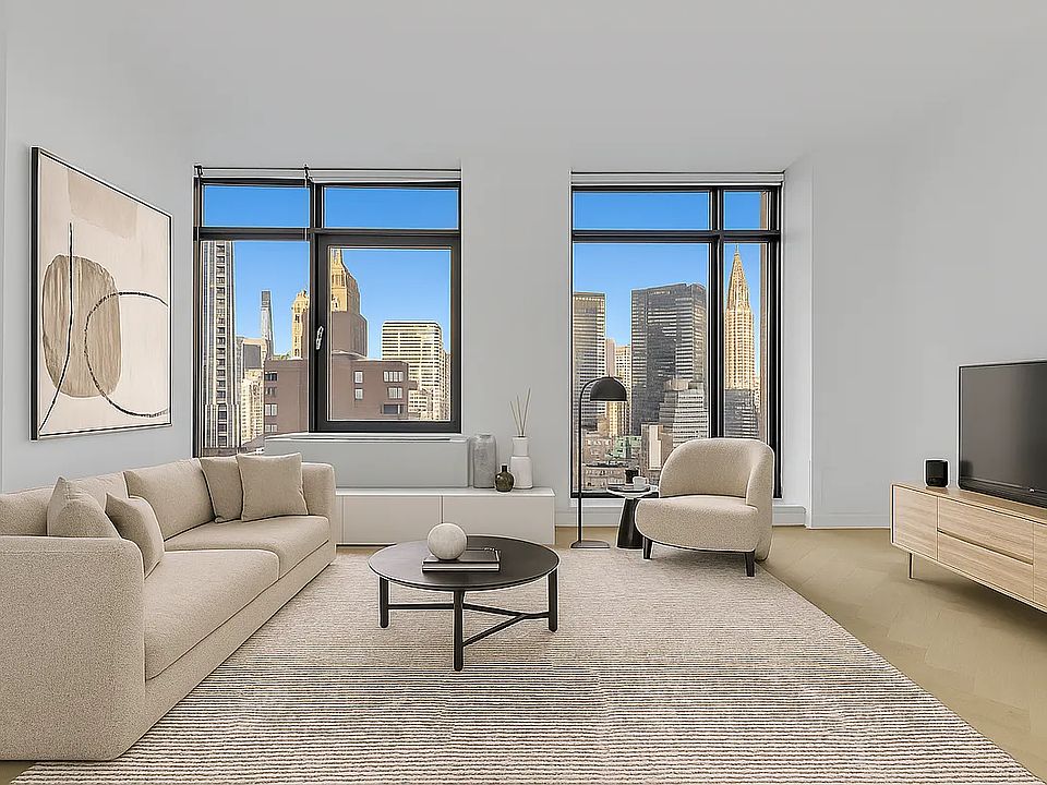 The property boasts a 24-hour doorman, a well-appointed lounge, a tranquil rooftop with panoramic city and river views, a state-of-the-art fitness center, and onsite laundry facilities. Many units feature expansive floor-to-ceiling windows offering breathtaking views of landmarks like the Empire State Building and the Manhattan skyline. In-unit washers and dryers enhance daily convenience, and intelligent design maximizes space and functionality.