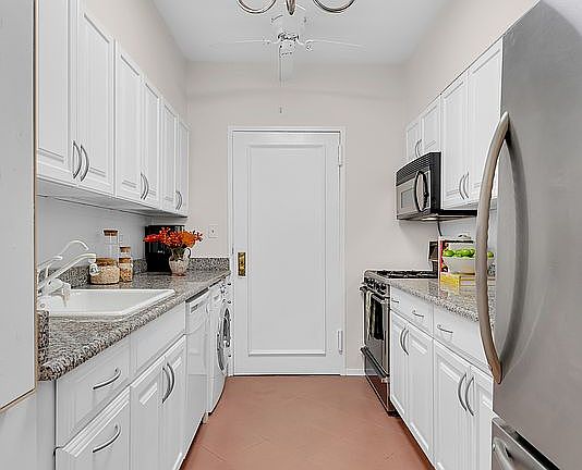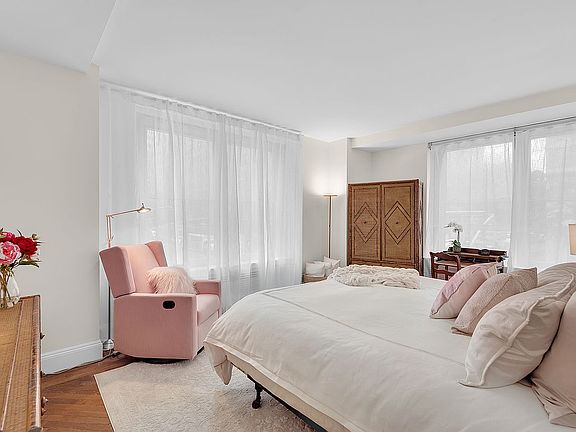 Both bedrooms are sun-filled and spacious with great storage space. A hallway full bathroom adjacent to second bedroom also doubles as a guest bath. The corner primary suite features two exposures, a walk-in closet and en-suite full bathroom.