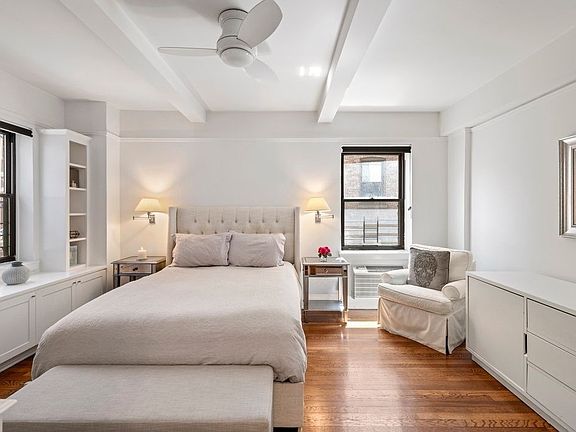 An elegant full service prewar co-op nestled just a block from Central Park, this 2-bedroom 1-bathroom home is a portrait of classic city charm. Features of the apartment include original hardwood floors with border inlays, beamed ceilings, northern and eastern exposure, a decorative fireplace, several chic built-ins, and attentive and friendly building staff. Beyond a tasteful foyer adorned with a pair of large coat closets and an arched doorway, the home flows into formal living and dining areas. The living room has a decorative fireplace, while the dining room has a wall of built-ins and leads into a windowed, galley-style kitchen equipped with sleek granite countertops, a glass-tile back splash, custom cabinetry, and a suite of high- end stainless steel appliances from Sub-Zero and Bosch. The master bedroom has dual exposure, a unique built-in, a massive walk-in closet, and easy access to a windowed full bathroom with marble walls and floors and a rain shower head. The second bedroom has dual exposure and is adjacent to the large living room 49 East 96th Street is a pristine prewar co-op located in Carnegie Hill on the edge of Central Park. The building has a 24-hour doorman, live-in super, laundry room, bicycle storage, fitness room, and private storage. It is close to the Jacqueline Kennedy Onassis Reservoir and Museum Mile, and is surrounded by restaurants, cafes, and shops. Nearby subway lines include the 4/5/6/Q. Pets are welcome.