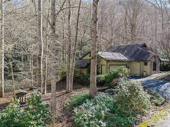 This charming mountain home offers a perfect blend of comfort, beauty, & functionality.Located in a serene setting w/year-round accessibility,it features stunning curb appeal,lush landscaping, & a covered rocking chair porch.Enjoy peaceful moments on the back deck overlooking a rushing creek.The main level is designed for convenience, w/ a 2-car attached garage,full laundry room,a spacious guest bedroom, & a large primary suite w/ two closets (one walk-in) & a luxurious primary bath with double vanity,jet tub, & separate walk-in shower.The heart of the home is the rustic great room w/vaulted ceilings,exposed timber frame beams,a wood ceiling, & hardwood floors, anchored by a beautiful river rock wood-burning fireplace. The kitchen boasts stainless steel appliances, beautiful cabinetry, & a bar for casual dining. A loft area, currently used as a 3rd bedroom, completes this stunning property. Ideal for full-time living, a vacation getaway, or an investment.