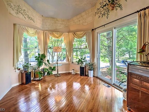 A Rare Gem - a deceptively large end unit D model, in the sought after Edgewood development offering a 1st floor master bedroom is what you have been looking for! As you walk into the foyer, you are greeted by an open floor plan accented by the brightly lit 2-story Living Room w soaring windows and a wood burning fireplace as the focal point. Adjacent is a Sunroom w bucolic views that exits to the rear yard. The Kitchen, with a separate eat in area, enjoins the Family Room, which also includes a wood burning fireplace. The Family Room walks out onto the 2nd patio where you will enjoy the serene garden or entertain. New W D. The 2nd level boasts 2 bedrooms, an oversized loft with 2 skylights and an updated bathroom. Located close to shopping, schools, with easy commute to NYC, 22, 287, 78, 202 206. Do not miss!