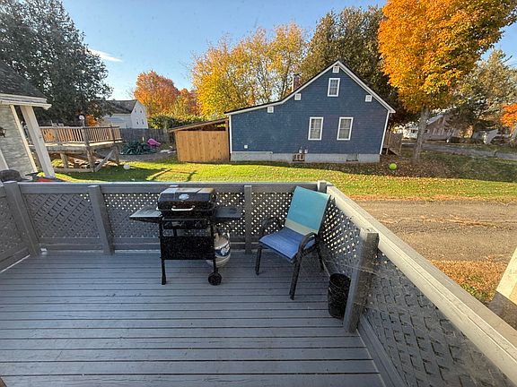 Neat local neighborhood cape style home! Lots to offer here with 2 bedrooms and one full bathroom on the second level. Large living room and and den, Open kitchen ( appliances included) and dining area. Nice size living room and a half bath round out this first floor. Recent updates on the Funace and fuel tank plus windows and doors on the first floor. South facing deck and a one car garage with lots of storage space. Big backyard is entirely fenced in for your privacy great for kids or pets. Walking distance to community park and downtown shopping etc. Check it out!