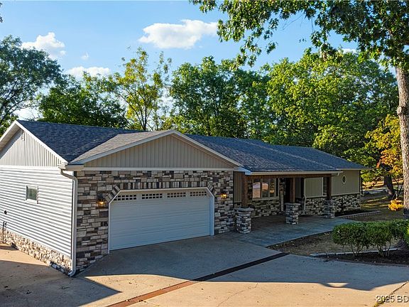 Spacious and stylish, this 2967 sq ft home sits on a huge corner lot, with a seasonal lake view and plenty of room to spread out. Featuring 4 bedrooms (1 non conforming), 3 baths, and even 2 kitchens. This home is perfect for hosting, multi generational living, or just having space for everyone. Also full rentals are allowed, potentially the whole house or turn the lower level into income property. With this full remodel, comes a new roof, central vacuum, and 9x28 bonus room for all your hobbies or extra guests. Enjoy the new covered back deck for peaceful mornings or evening get togethers. With and RV pad and full hookups, lots of parking, and a quiet neighborhood close to the Ozarks Amphitheater, Bridal Cave, and easy highway access - you get the best of both worlds: close to town but tucked away in a serene setting.